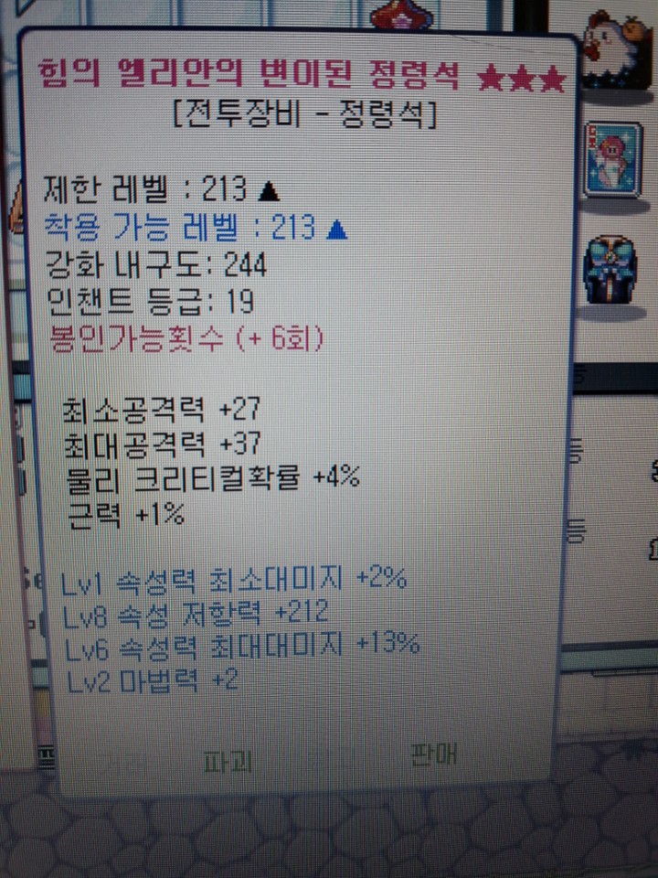 [팝니다] 라덱 엘리안정령석 팜