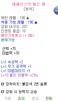2번 테세우스 붉젬 물관 23 물쇠+3 봉횟3 (팔림)