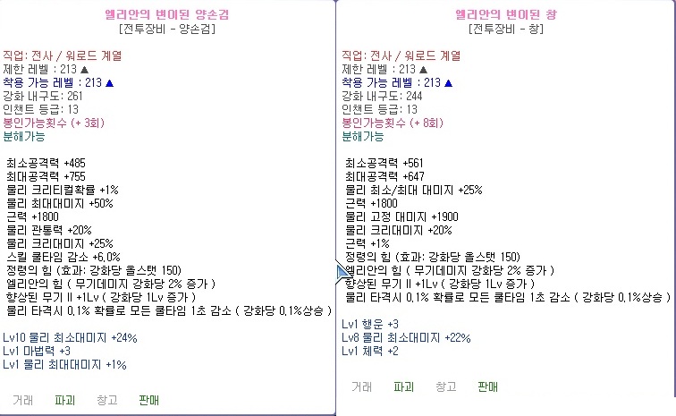 [팝니다] 엘랸 창/양손검 작용ㅍ