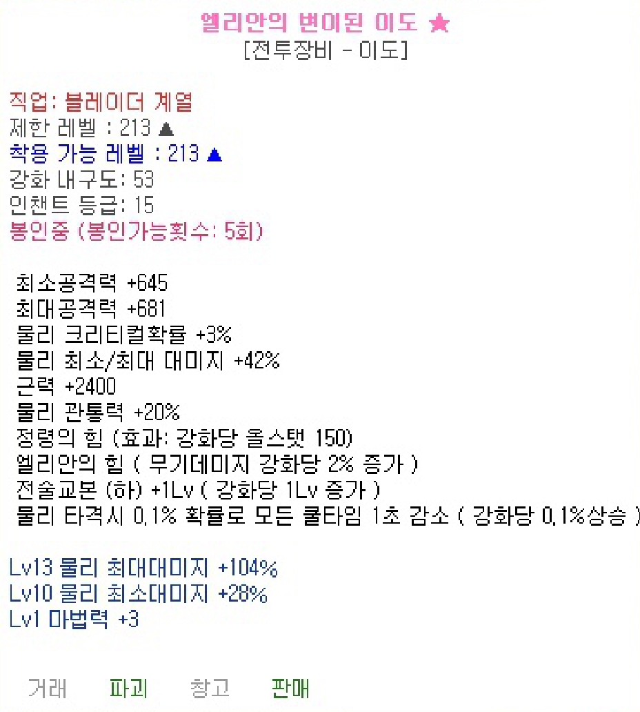 [팝니다] 엘리안이도 2강 28 104 봉횟5팝니다