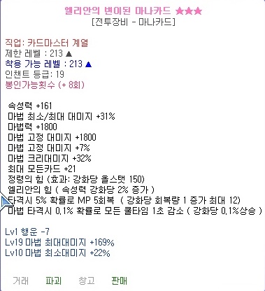 [팝니다] 엘리안마나카드 풀강 19작 169/22 봉인후횟수7팔아요