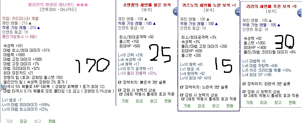 [팝니다] 엘랸마나카드169/22 리리풀강 초엔3옵 즈노체2옵팔아요