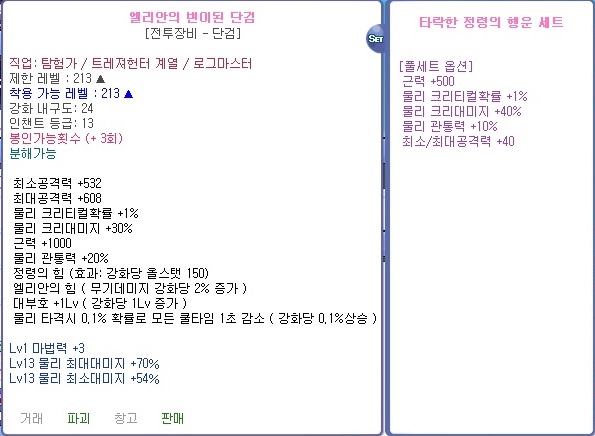 [팝니다] 태양 근력작 ㅍㅍㅍ /엘랸활&단검 ㅍ
