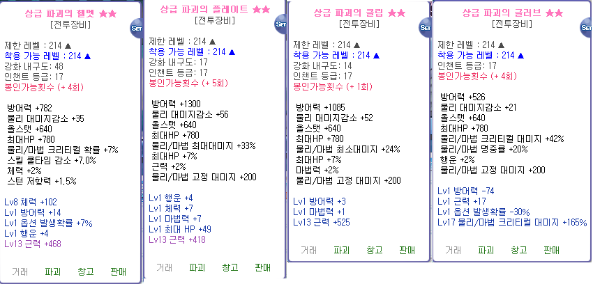 [팝니다] 상급 파괴셋(신발제외) 팝니다.
