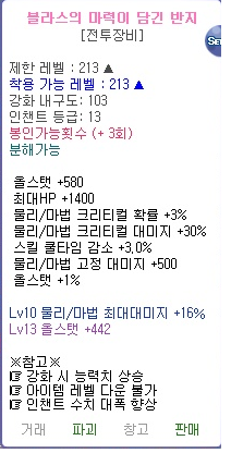 [팝니다] 블라스 반지 13/10 442/16 팝니다