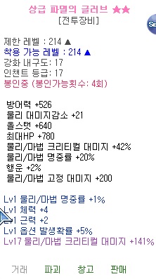 [팝니다] 상급 파멸 글러브 풀강 팝니다.