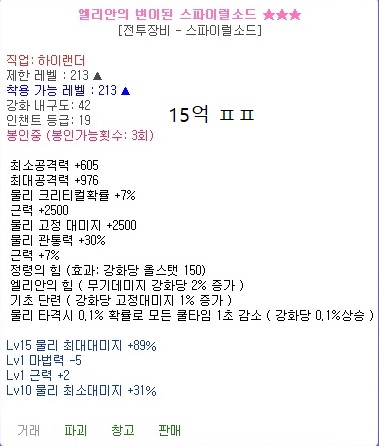 [팝니다] 엘리안 스파이럴소드 풀강 31/89 팜