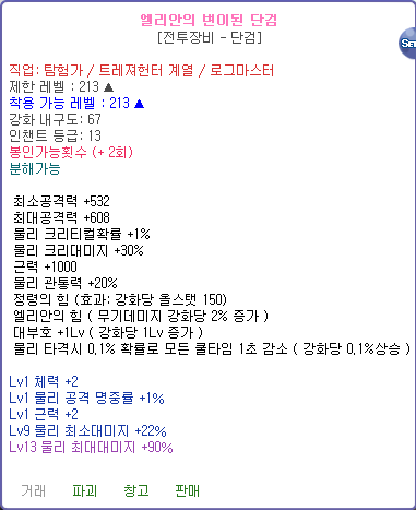 [삽니다] 사막장122%/엘리안 단검 고수치/오브 팝니다