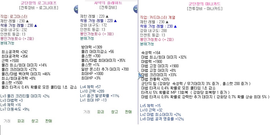 [팝니다] 군단)로그나이프/마나카드 팔아요