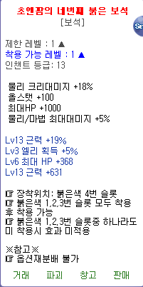 초엔 4번 노강 13/13작 19% 근 631 + (HP 6작 368) 230억 [흥정가능]