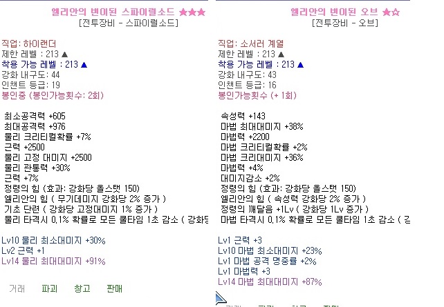 엘리안지팡이1강 최소22/최댐78 봉횟5 봉인중