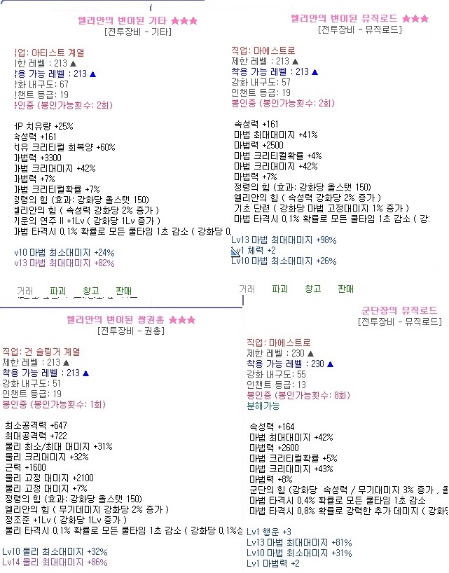 [팝니다] ★엘랸풀강/사막신/테세젬 등 팝니다★