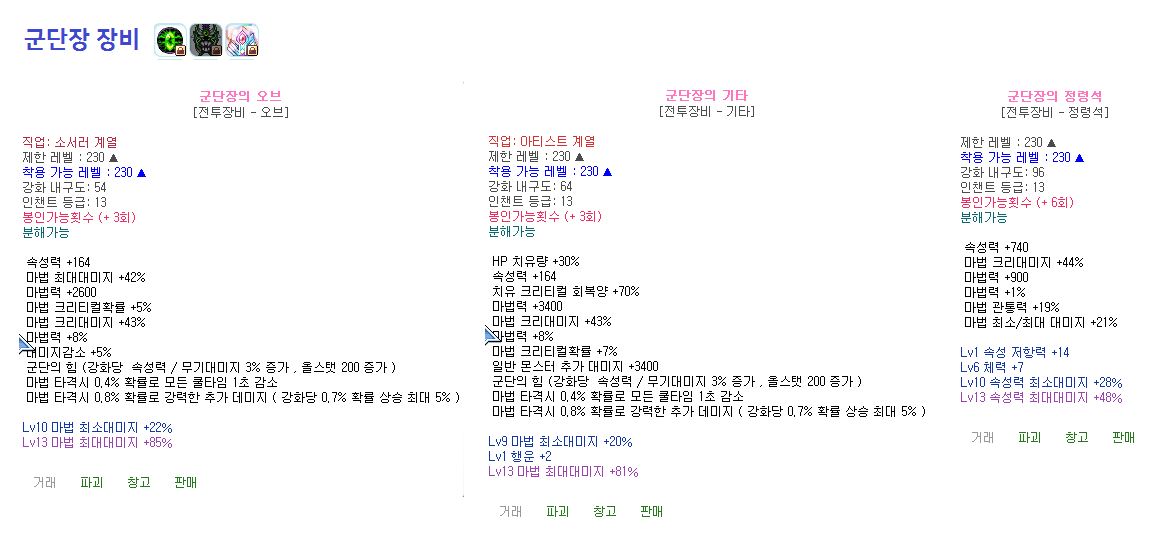 [팝니다] ★ 사막 마법작/젬/혼돈환영/군단장 오브,기타