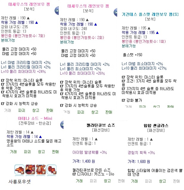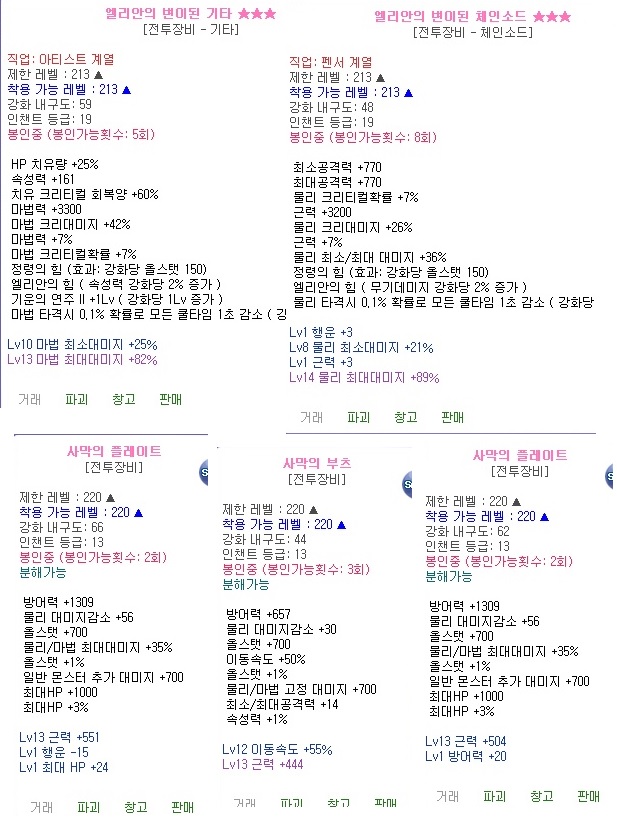 엘리안 무기 모두 봉인 및 경매장등록 되있습니다
