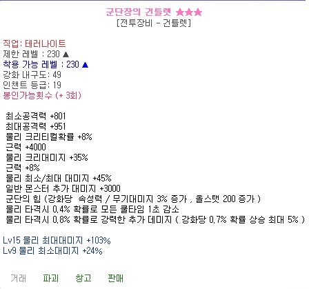 [팝니다] 군단장 건틀렛 풀강 팝니다