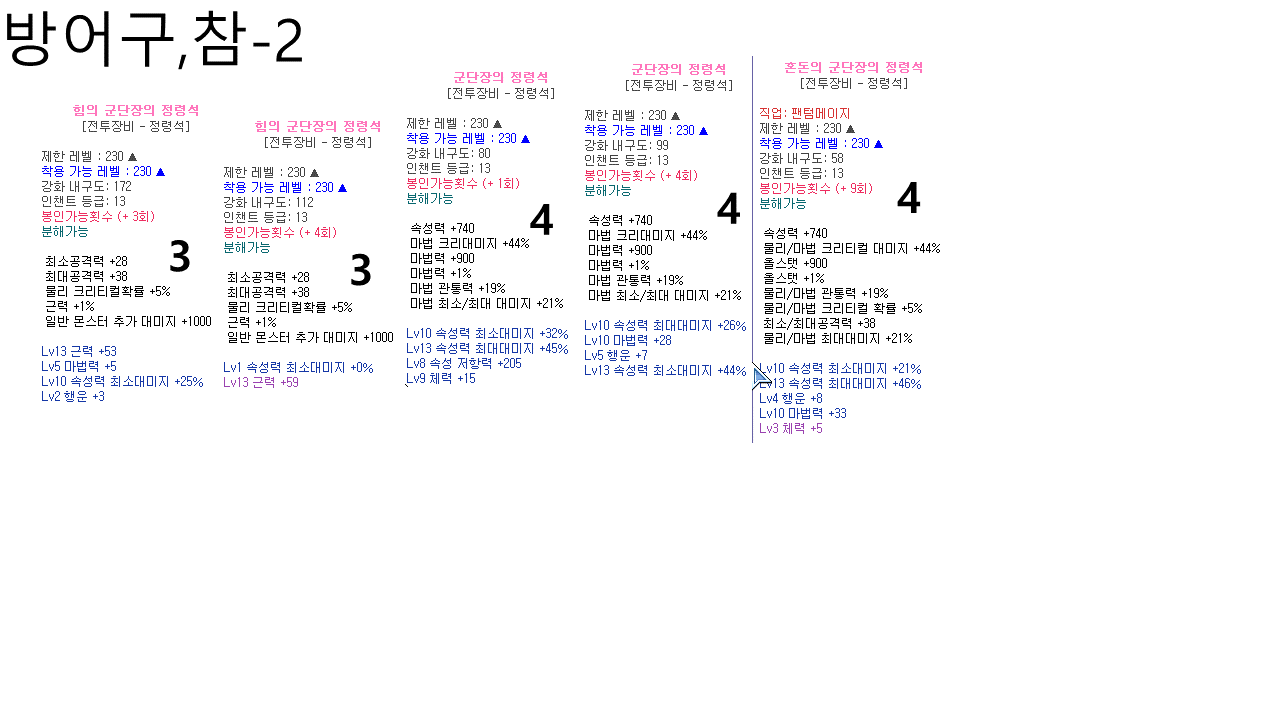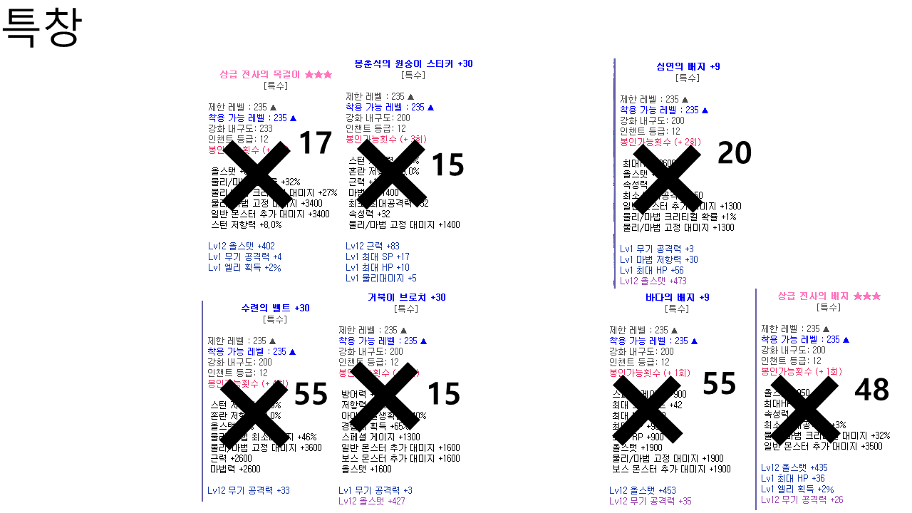 최종 특창, 악세, 방어구 사진 내용 처분합니다