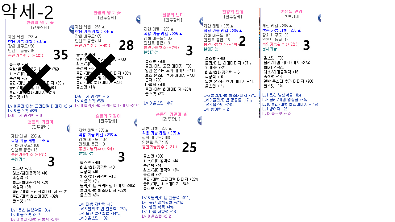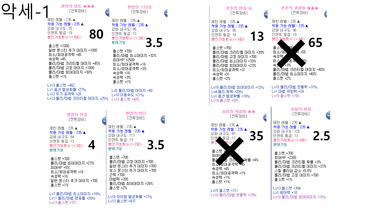 ex)악세 -1의 환영망토6강의 가격은 80 - 0.5(물쇠5개값) = 75.5