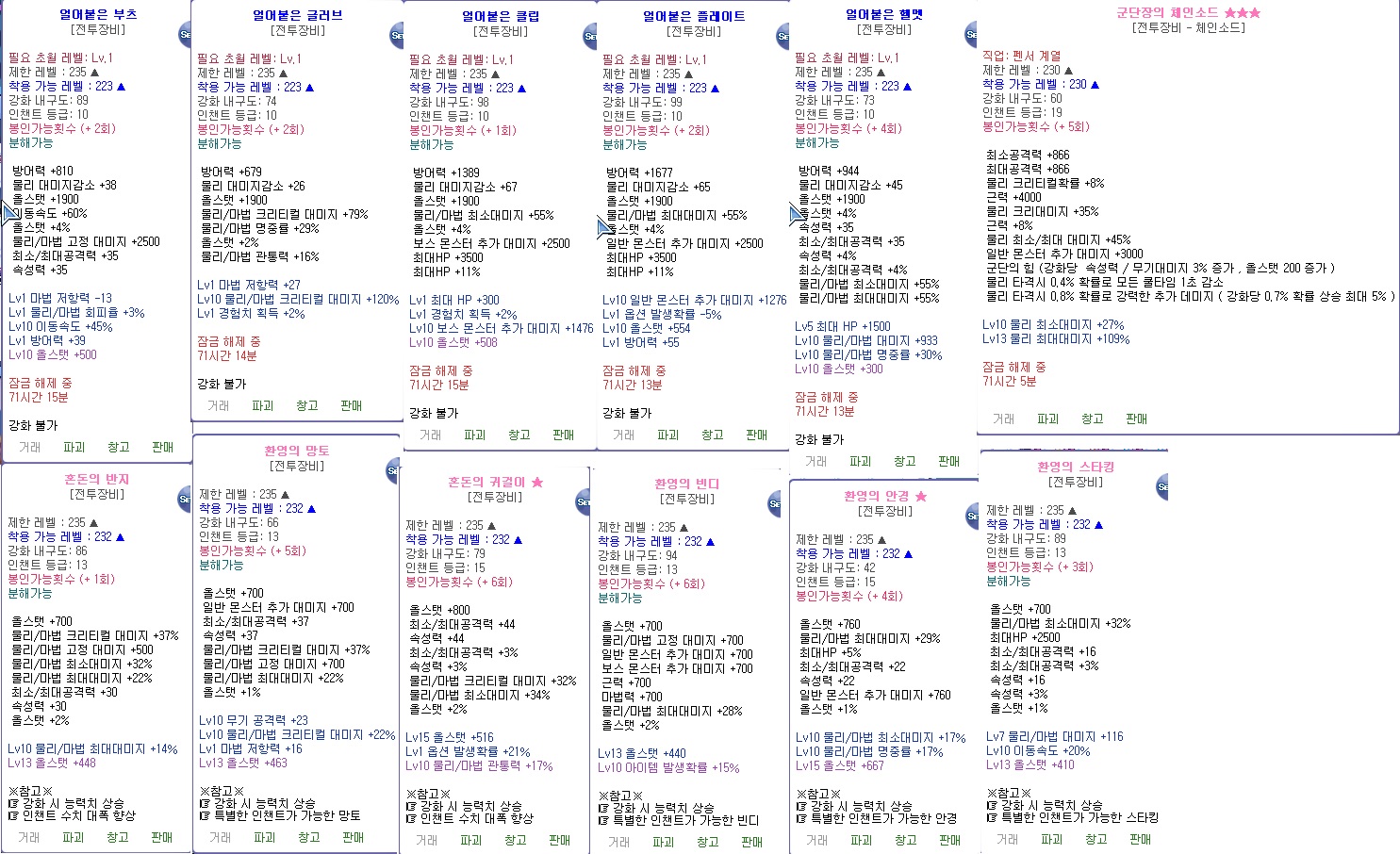 [팝니다] 군단첸소/얼붙장비/환영&혼돈 악세 팔아요