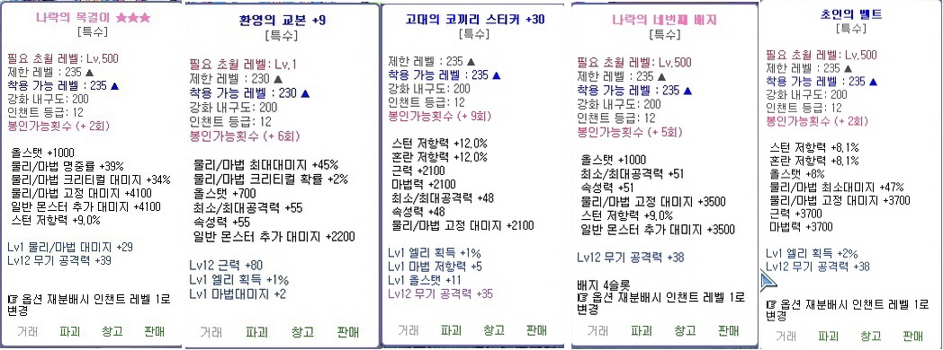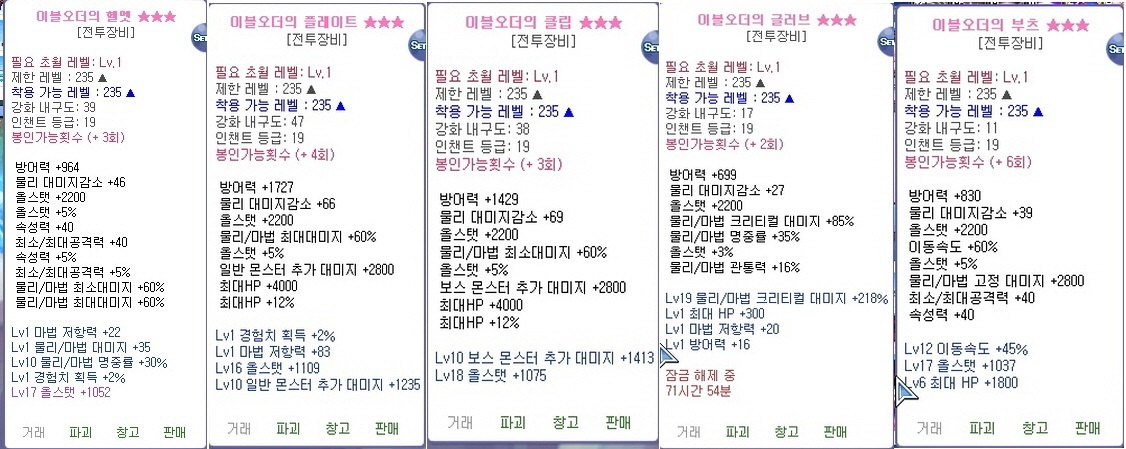 현재 예약잡은템 제외 전부 경매장에 올려져있습니다