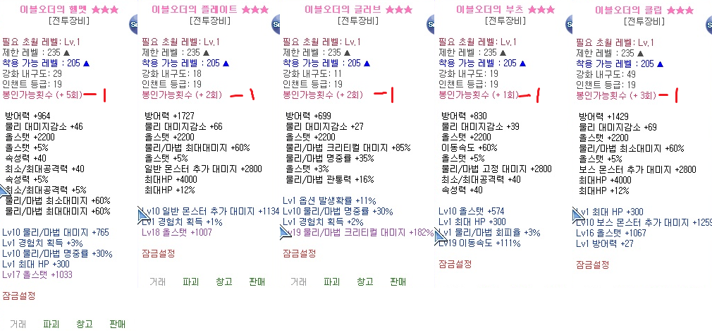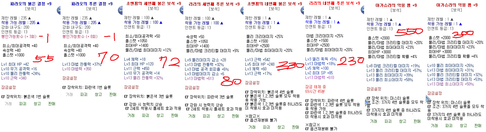 [팝니다] 이블오더 풀셋, 아가슈라 악몽, 파라오 젬, 리리의 세번째 네번째, 초엔팜의 세번째 네번째, 특홍 등 판매