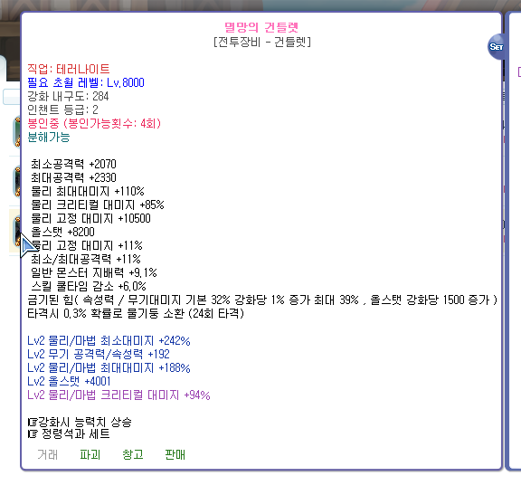 멸망 건틀렛 노강 팝니다
