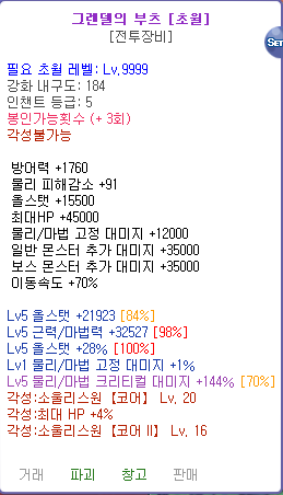 초월 그렌부츠(소울리스원코1+코2+HP) 4000억 팝니다