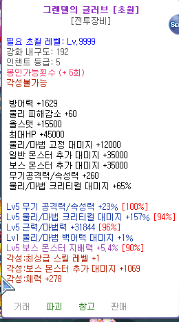 그렌델장갑 초월 종결 팝니다